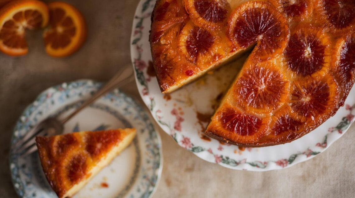 A Mindful Recipe A vibrant, aromatic twist on the classic — glossy citrus slices caramelise into a sticky topping while the soft cardamom‑spiced cake bakes underneath. Ingredients Topping 2–3 blood oranges, thinly sliced 3 tbsp vegan butter ½ cup light brown sugar 1 tbsp orange juice Cake 1½ cups plain flour ¾ cup sugar 1 tsp baking powder ½ tsp baking soda ¼ tsp salt 1 tsp ground cardamom ½ cup oat milk ⅓ cup neutral oil 1 tsp vanilla extract 1 tbsp apple cider vinegar Zest of 1 orange Method