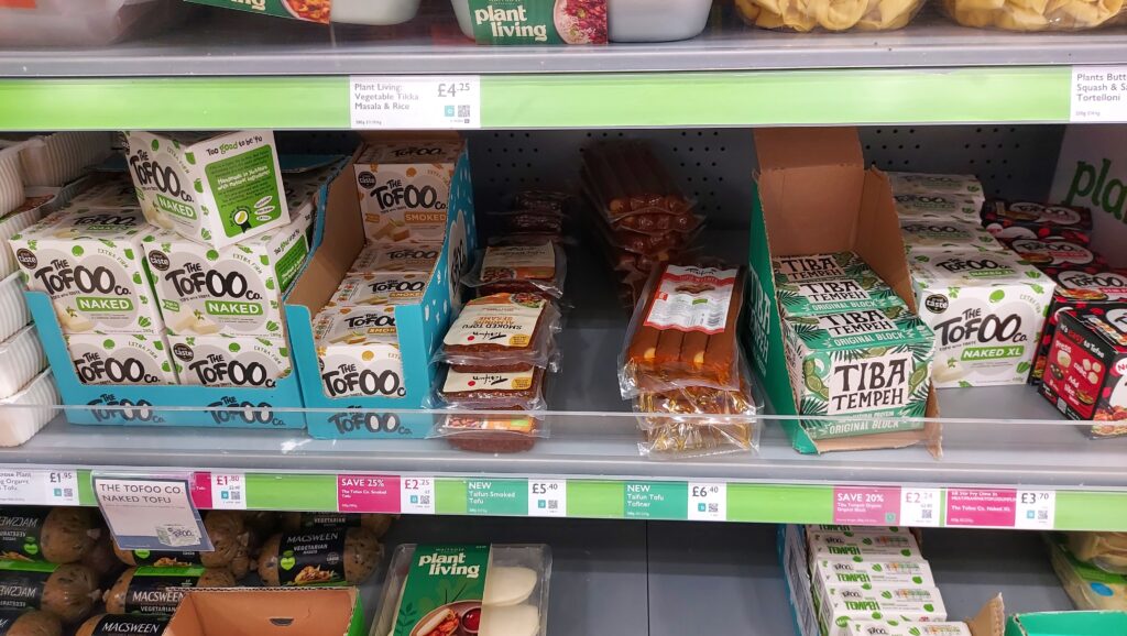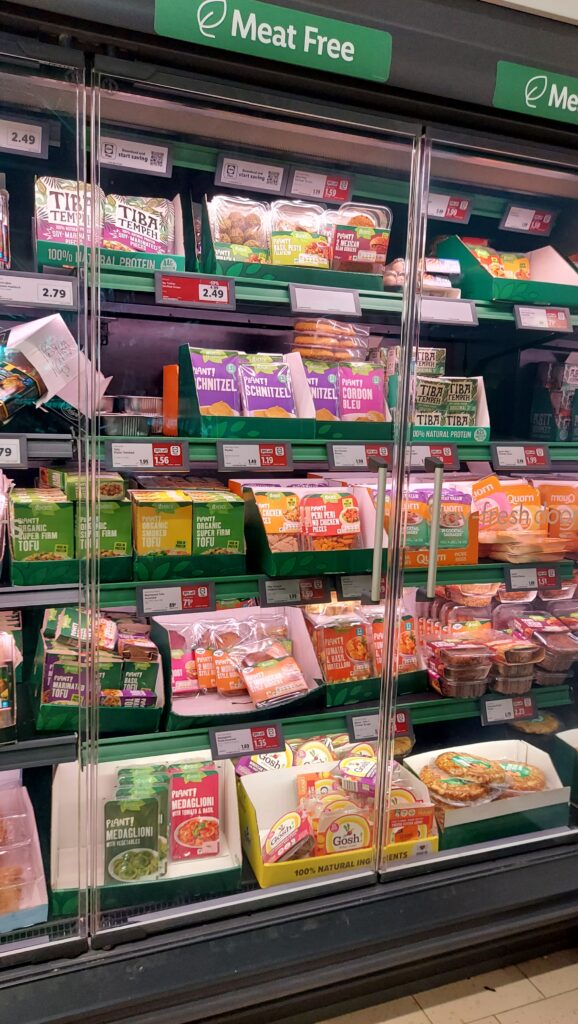 Please note: store layouts and stock vary, and some displays may mix vegan and vegetarian products together. Always double‑check labels before purchasing to make sure you’re picking up the fully plant‑based option.