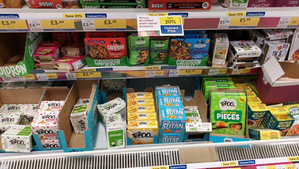 | Tesco | 20% off chilled vegan with Clubcard + freezer reductions | Everyday staples |